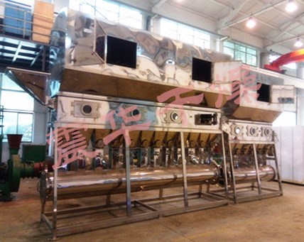 工作原理:潔凈的熱風(fēng)經(jīng)閥板分配進(jìn)入床體內(nèi),從加料器進(jìn)入的濕物料被熱風(fēng)形成流化狀態(tài),如煮沸的開水在床體內(nèi)跳躍,故稱為沸騰干燥器(或機),由于熱風(fēng)和物料廣泛接觸,因此在在較短時間內(nèi)就可干燥。從床體的一頭進(jìn)入,經(jīng)過幾分鐘至幾十分鐘時間的“沸騰”,自動從床體的另一頭流出。